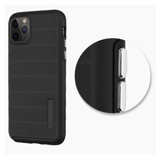 For Apple iPhone 11 (6.1") Texture Brushed Line Shockproof Rugged Shield Non-Slip Hybrid Dual Layers Soft TPU + Hard PC Back Black Phone Case Cover