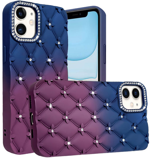 For Apple iPhone 12 / 12 Pro Fashion Flower Design Sparkle Glitter Shimmer Rhinestone Bling Leather Feel Thick TPU Rubber Hard PC Case Cover
