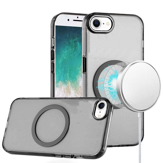 Transparent Back Hybrid Case - Magnetic Circle, Color Frame, Metal Buttons, MagSafe Compatible