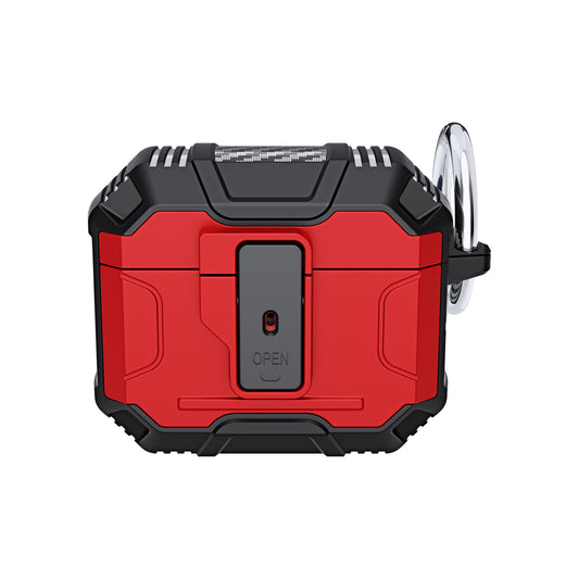 For Airpods Pro 3 (2025) Heavy Duty Hybrid Shockproof Case Hard PC Rubber TPU Cover with Open Button & Metal Hook Case Cover Red