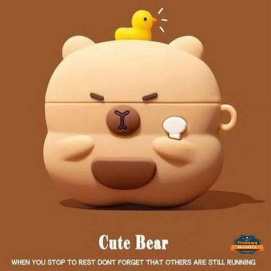 For Apple AirPods 4 Hybrid Cute 3D Fun Design Silicone Skin Cartoon Characters with Keychain Buckle Holder Rubber TPU Soft Cover Case Cover Cute Bear