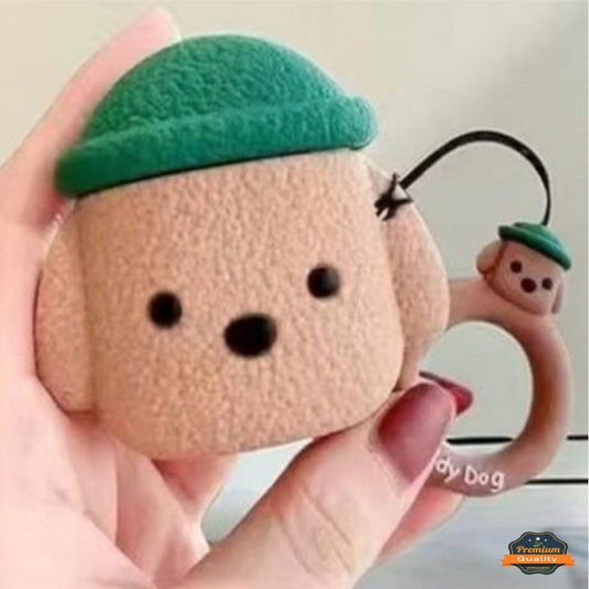 For Apple AirPods 4 Hybrid Cute 3D Fun Design Silicone Skin Cartoon Characters with Keychain Buckle Holder Rubber TPU Soft Cover Case Cover Dog