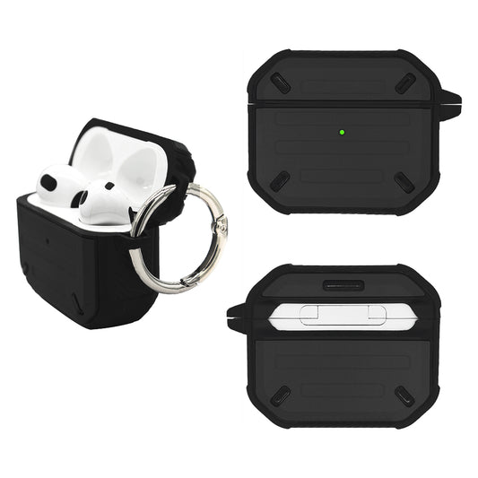 For Apple AirPods 3 (2021) Premium Ultra ShockProof Hybrid With Metal Hook Carabiner & Switch Closure Full-Body Rugged Protective Phone Case Cover