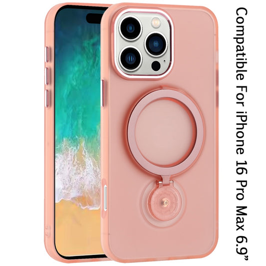 For Apple iPhone 16 Pro Max (6.9") Hybrid Magnetic Circle 360° Ring Kickstand with MagSafe Compatible & Camera lens Protector Case Cover