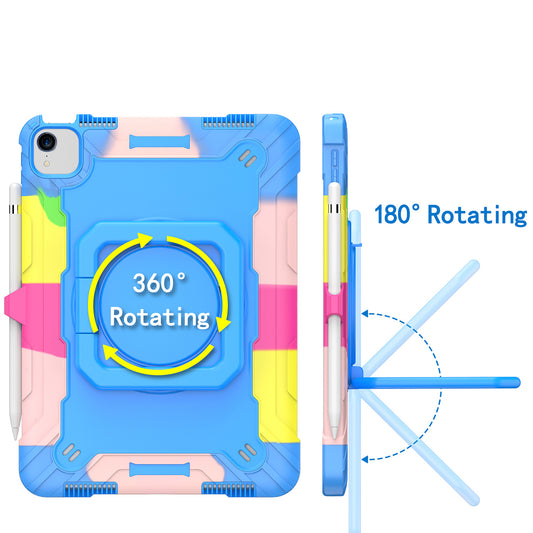 Case for Apple iPad Air 4 / iPad Air 5 / iPad Pro (11 inch) Milary Grade Shockproof Protector Silicone with Pencil Holder + Handle + Shoulder Strap + Rotating Kickstand Colorful Rainbow Tablet Cover