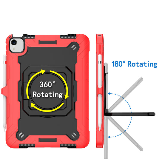 Case for Apple iPad Air 4 / iPad Air 5 / iPad Pro (11 inch) Hybrid 3in1 Armor Rugged with Built-in Kickstand 360° Rotatable Stand & Shoulder Hand Strap Corner Shockproof Red Tablet Cover