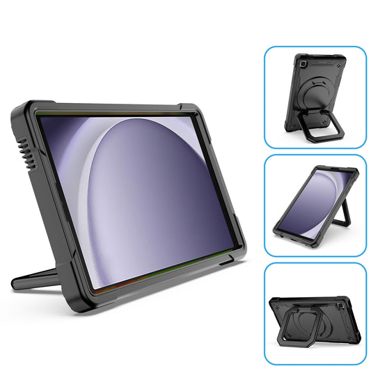 For Tough Hybrid 3 in 1 Case with 180° Rotating Kickstand, Adjustable Shoulder Strap, Shockproof TPU Rubber PC Black Tablet Case Cover