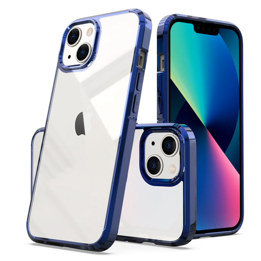 For Apple iPhone 13 Pro Max Clear Colored Shockproof Transparent Hard PC + Rubber TPU Hybrid Bumper Shell Slim Protective Case Cover Clear