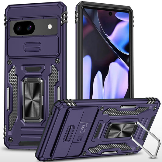 For Google Pixel 9A Hybrid Shockproof, Built-in Sliding Camera Lens Protection with Magnetic Finger Ring Stand Holder Case Cover