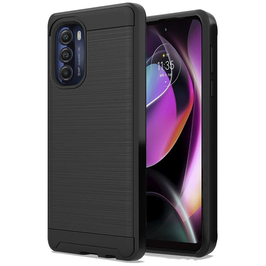 For Motorola Moto G 5G 2022 Hybrid Rugged Brushed Metallic Design [TPU + Hard PC] Dual Layer Shockproof Armor Impact Phone Case Cover
