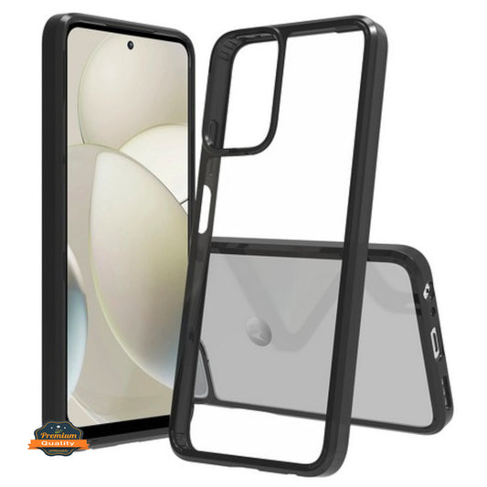 For Motorola Moto G 5G 2025 Ultimate Hybrid Transparent Rubber with Metal Buttons & Camera Edges, Hard TPU Frame Corner Bumper Case Cover