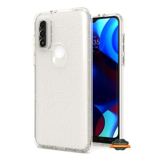 For Motorola Moto G Pure Glitter Clear Fashion Design Shiny Bling Flake Sparkling Hybrid TPU Hard Back Sturdy High Impact Phone Case Cover