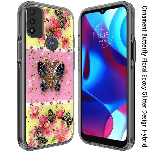 For Motorola Moto G Pure Glitter Sparkle Colorful Bling Flake 3D Ornament Butterfly Floral Epoxy Hybrid Shockproof TPU Hard Phone Case Cover
