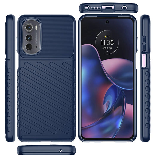 For Motorola Moto Edge (2022) Rugged Hybrid Hard Silicone Gel TPU Bumper Texture Shockproof Anti Slip Protective Stylish Blue Phone Case Cover