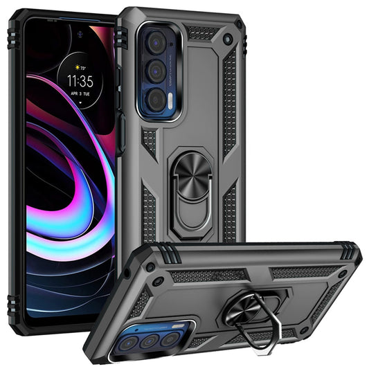 For Motorola Moto Edge 5G 2021 Hybrid Durable Dual Layer with 360 Rotatable Ring Stand Holder Kickstand Fit Magnetic Car Mount Gray Phone Case Cover