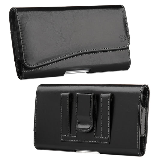 For Samsung Galaxy A23 5G Universal Premium Horizontal Leather Case Pouch Holster with Magnetic Closure Belt Clip & Belt Loops Holster [Black]