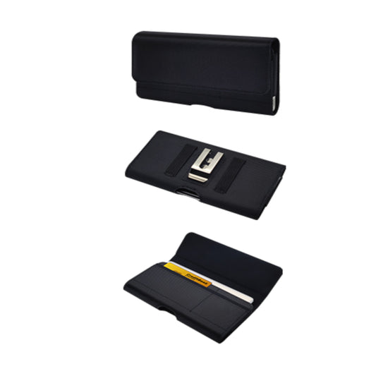 Universal Nylon Canvas Horizontal Pouch Holster with Wallet Credit Card Slots & Belt Loop Clip Carrying Phone (6.7")