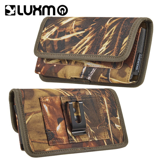 For Apple iPhone 16 Pro Max (6.9") Vertical Camouflage Nylon Canvas Holster Universal Cell Phone Pouch Velcro Closure with Credit Card Slot & Belt Clip Loop Carabiner [Hunting Camo]