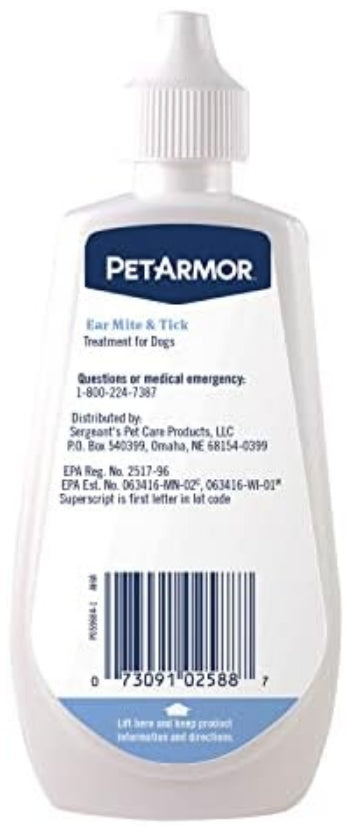 PetArmor Ear Mite and Tick Treatment for Dogs [Dog Supplies] 3 oz