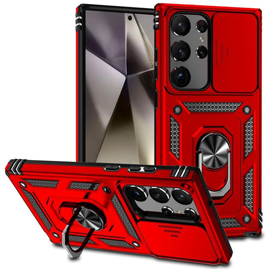 For Samsung Galaxy S25 Ultra Hybrid Shockproof with Magnetic Ring Stand, Compatible with Magsafe & Sliding Camera Lens Protector Case Cover