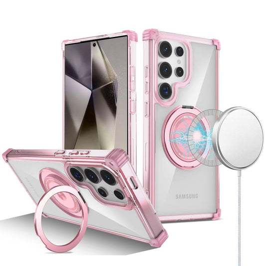 For Samsung Galaxy S25 Ultra Shield Magnetic Case [Compatible with MagSafe], 360° Rotatable Invisible Ring Stand, Transparent Back Case Cover
