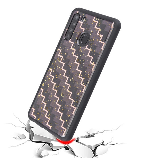 For Samsung Galaxy A21 Stylish Design Hybrid Rubber TPU Hard PC Shockproof Armor Rugged Slim Fit Carbon Fiber Texture Black Phone Case Cover