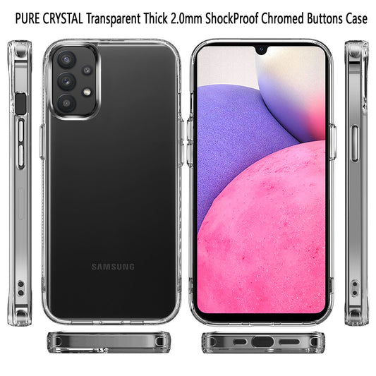 For Samsung Galaxy A33 5G Hybrid HD Crystal Clear Hard PC Back Gummy TPU Frame Slim Fit Thick with Chromed Buttons Transparent Phone Case Cover