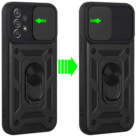 For Samsung Galaxy A33 5G Hybrid Cases with Slide Camera Lens Cover and Ring Holder Kickstand Dual Layer Hard Heavy Duty Phone Case Cover