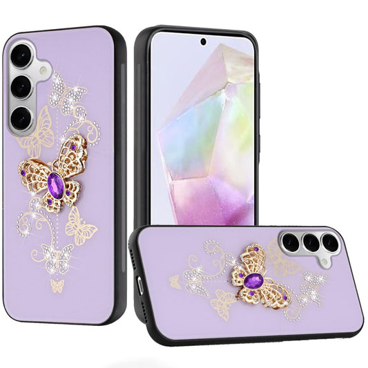 For Samsung Galaxy A36 Diamonds 3D Butterfly Bling Sparkly Glitter Ornaments Engraving Hybrid Metal Fashion Case Cover Purple Garden Butterflies