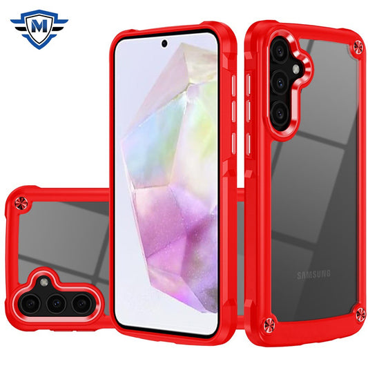 For Samsung Galaxy A36 Ultimate Hybrid Transparent Rubber with Metal Buttons & Camera Edges, Hard TPU Frame Corner Bumper Case Cover