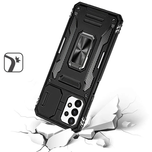 For Samsung Galaxy A52 5G Hybrid Case with Rotation Ring Stand Shockproof & Camera Window TPU Armor Dropproof Case Cover Black