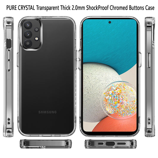 For Samsung Galaxy A53 5G Hybrid HD Crystal Clear Hard PC Back Gummy TPU Frame Bumper Slim Fit with Chromed Buttons Transparent Phone Case Cover