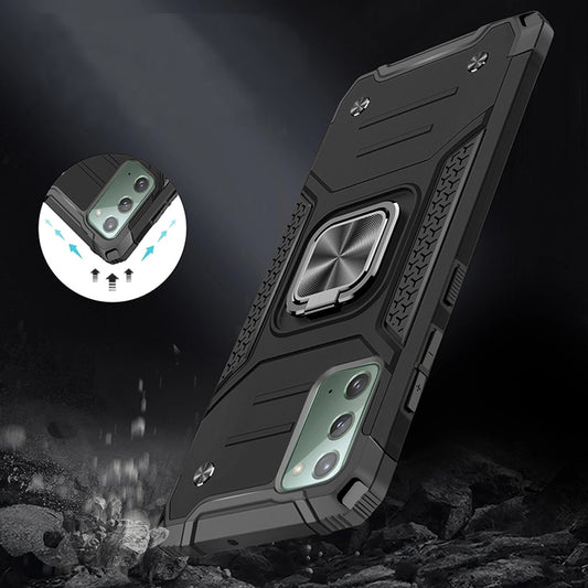 For Samsung Galaxy Note 20 Armor Hybrid with Ring Stand Holder Kickstand Shockproof Heavy-Duty Durable Rugged 2in1 Black Phone Case Cover