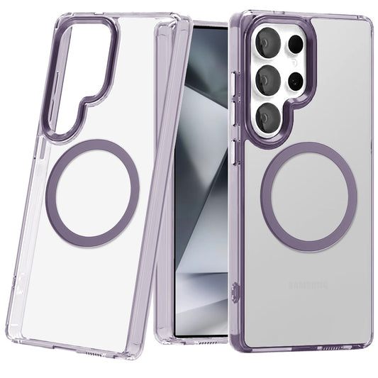 For Samsung Galaxy S23 Ultra Transparent Back Hybrid Case - Magnetic Circle, Color Frame, Metal Buttons, MagSafe Compatible Case Cover