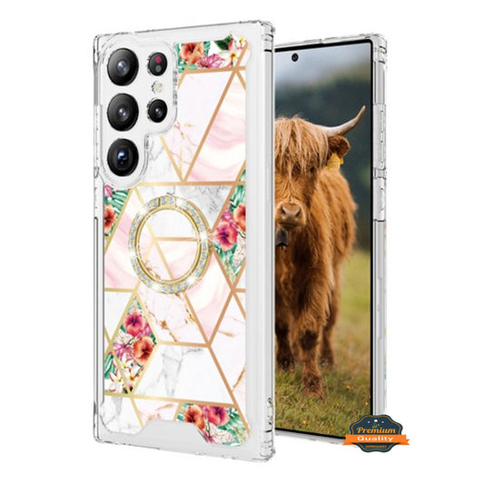 For Samsung Galaxy S24 FE /Fan Edition Fashion Design Pattern Hybrid Ring Kickstand Bling Diamond Hard PC TPU Protective Case Cover