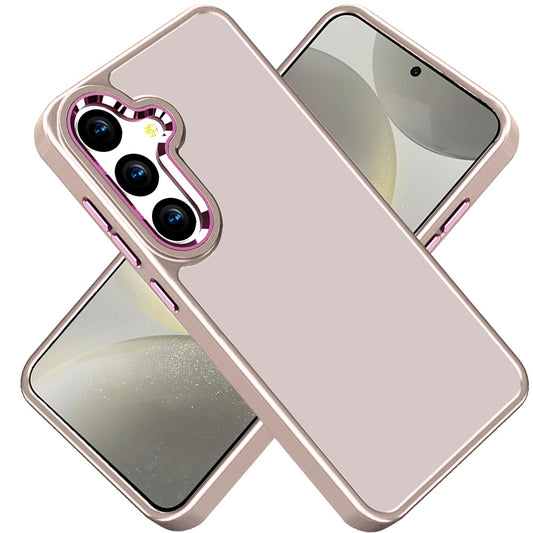 For Samsung Galaxy S25 /S24 Premium Hybrid Transparent Rubber with Metal Buttons & Camera Edges, Hard TPU Frame Corner Bumper Case Cover
