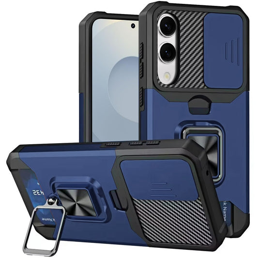 For Samsung Galaxy S25 EDGE Tough Hybrid Case with Movable Camera Window & Metal Ring Stand Shockproof Case Cover
