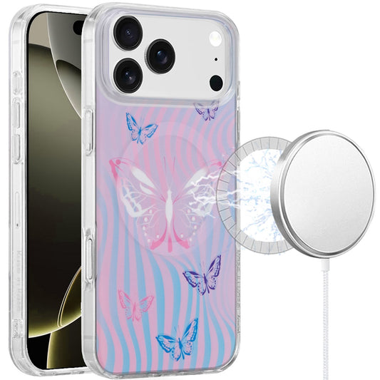 For Apple iPhone 17 Pro Max Stylish Pattern Fashion IMD Printed Design TPU Double Layer Slim Shockproof with Magnetic Back Case Cover Pink Butterfly