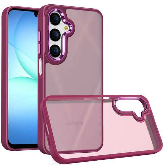 For Samsung Galaxy S25 Fan Edition /Galaxy S25 FE Slim Fit Hybrid Transparent Thick Acrylic with Metal Buttons Frame Protective Hard PC + TPU Shockproof Case Cover Burgundy