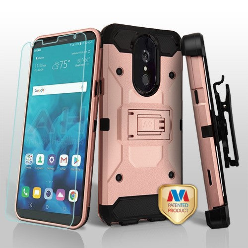 For LG Stylo 4 / Stylo 4 Plus Hybrid Armor with Belt Clip Holster Kickstand with Screen Protector Hard PC Cases Shockproof Rose Gold Phone Case Cover
