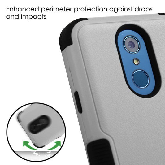 For LG Q7, LG Q7+ Hybrid Three Layer Hard PC Shockproof Heavy Duty TPU Rubber Anti-Drop Gray Black Phone Case Cover