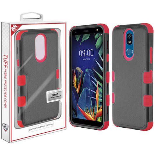 For LG K10 (2018)/K30 (X410)/Premier Pro/Harmony 2/Phonenix Plus Hybrid Three Layer Hard PC Shockproof Heavy Duty TPU Rubber Red Black Phone Case Cover