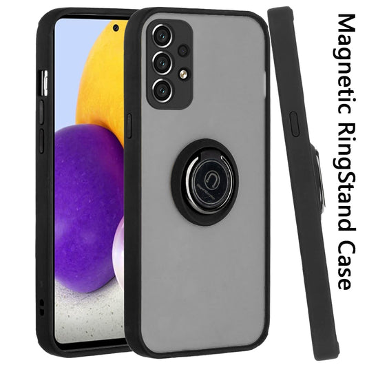 For Samsung Galaxy A73 5G Hybrid PC and TPU Shockproof with 360° Rotation Ring Magnetic Metal Stand & Covered Camera Phone Case Cover
