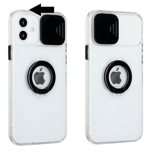 For Apple iPhone 13 Mini (5.4") Transparent Cases with Ring Stand & Camera Window, Slide Lens Protection Hybrid Shockproof Phone Case Cover