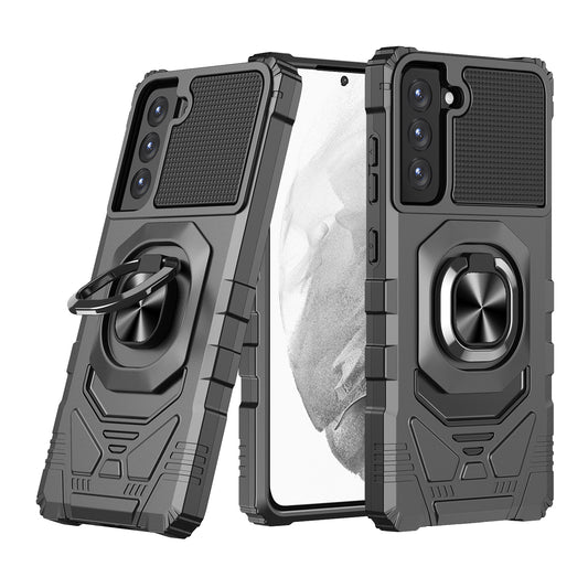 For Samsung Galaxy S21 FE /Fan Edition Hybrid Dual Layer with Rotate Magnetic Ring Stand Holder Kickstand, Rugged Shockproof Anti-Scratch Protective Phone Case Cover