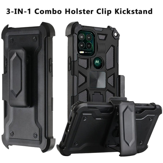For Motorola Moto G Stylus 2021 5G Version Hybrid 3in1 Combo Holster Belt Clip with Kickstand, Full-Body Protective Military-Grade Phone Case Cover