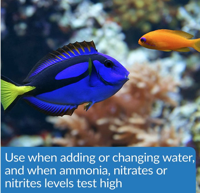 * NITRITES AND NITRATES REMOVER: Produced by fish waste and uneaten fish food, nitrites inhibit respiration and suppress the immune system at low levels, while high levels cause suffocation; Nitrates can be harmful to fish and lead to algae growth