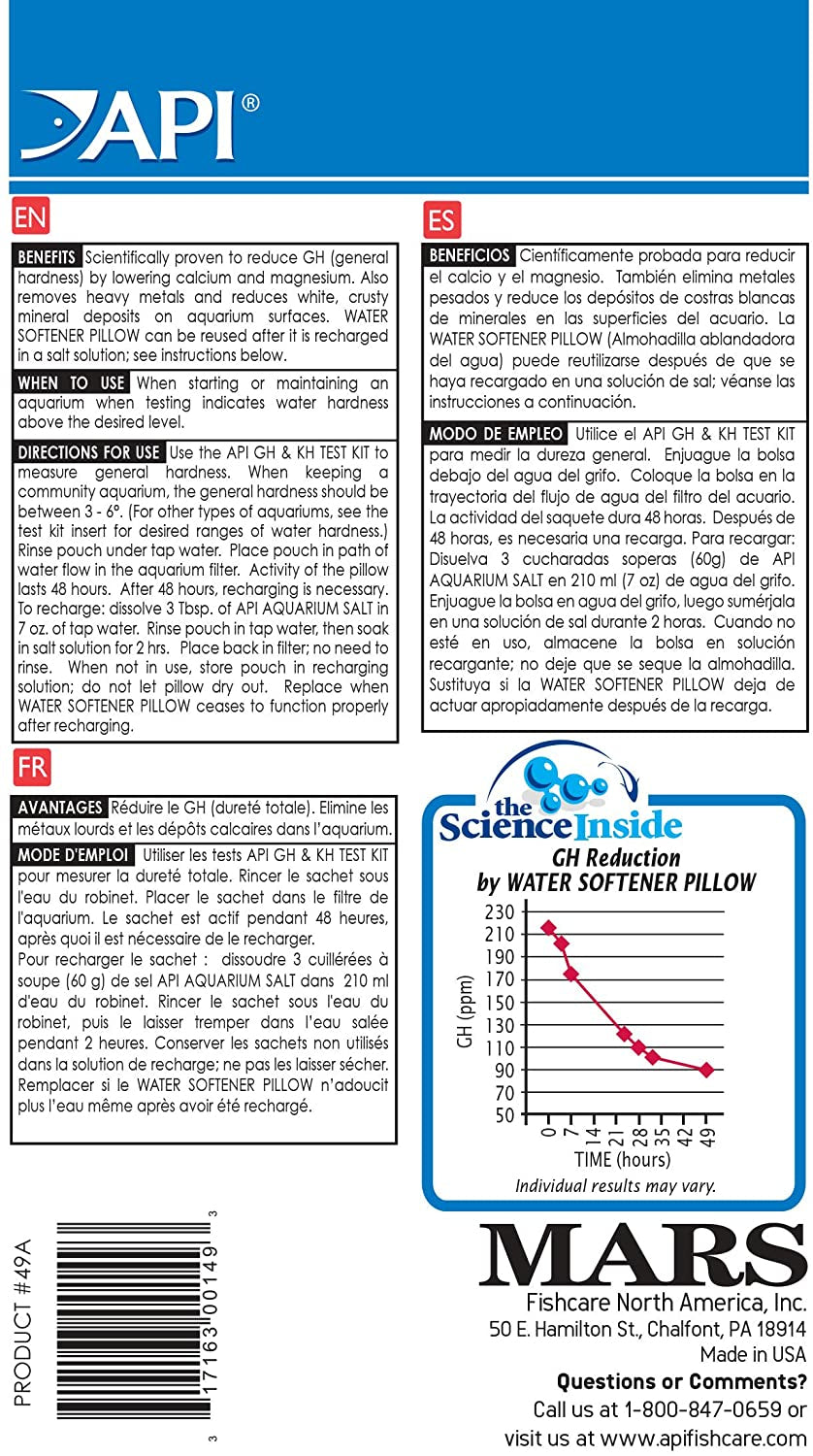 API Water Softener Pillow Size 5 Filtration Media to Reduce General Hardness [Aquarium Supplies] 1 count