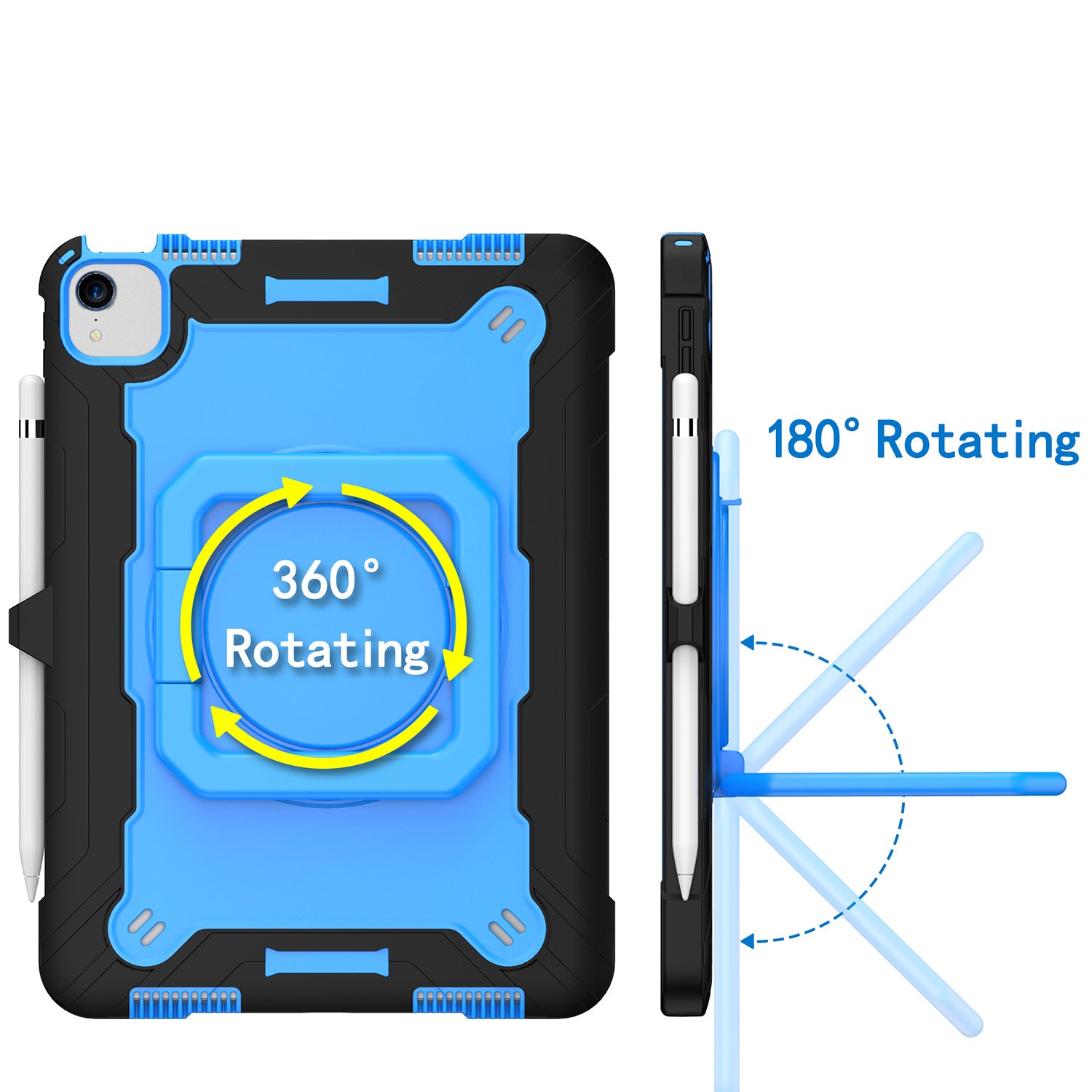 Case for Apple iPad Air 4 / iPad Air 5 / iPad Pro (11 inch) Tough Hybrid Armor 3in1 with 360 Degree Rotating Kickstand & Shoulder Strap Shockproof Black / Blue Tablet Cover