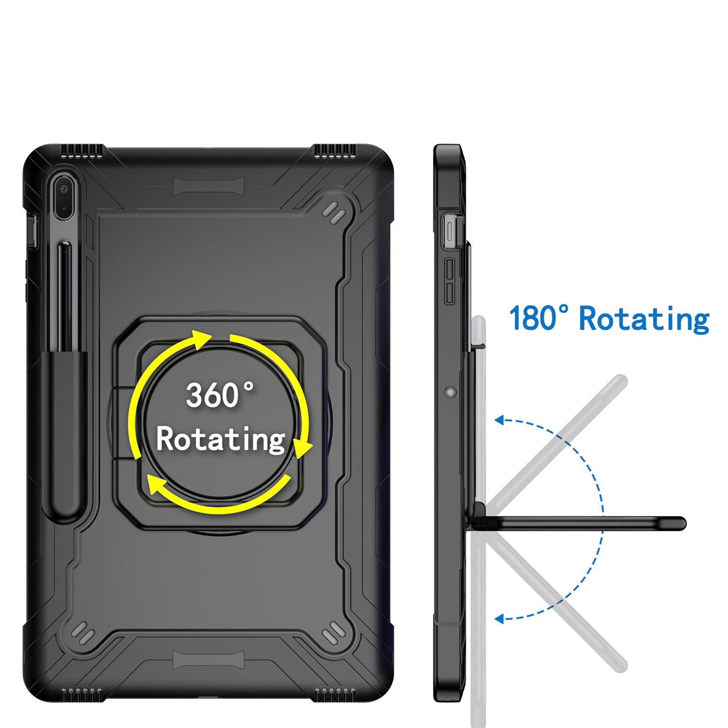 Black Shockproof Tablet Tough Cover 360° Rotating Kickstand Foldable Stand and Shoulder Strap Military Grade Drop Tested Protective Cases